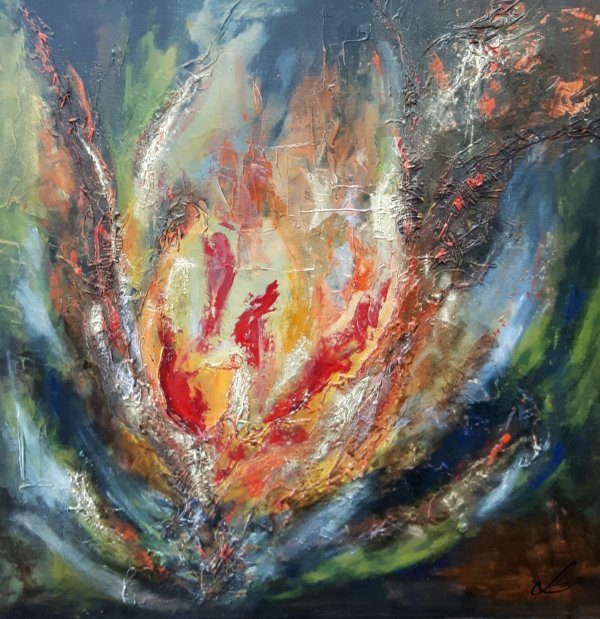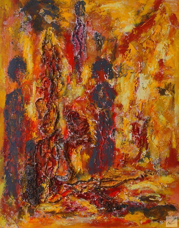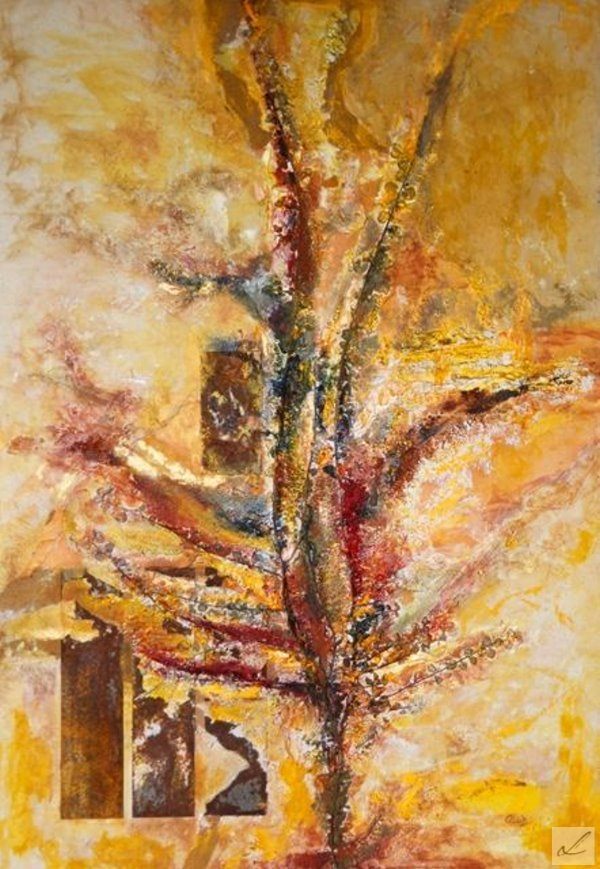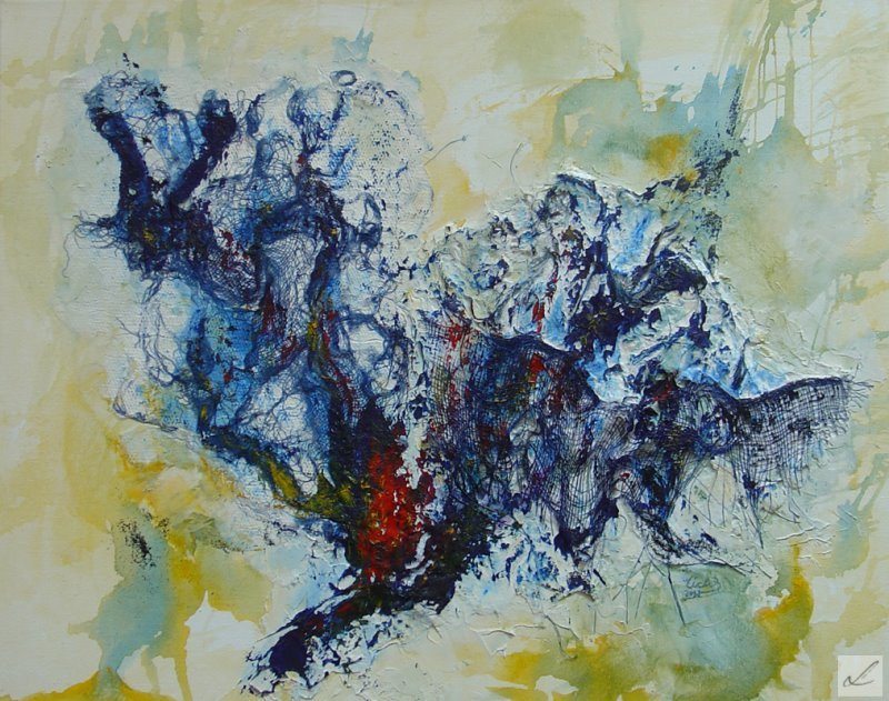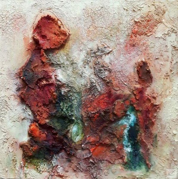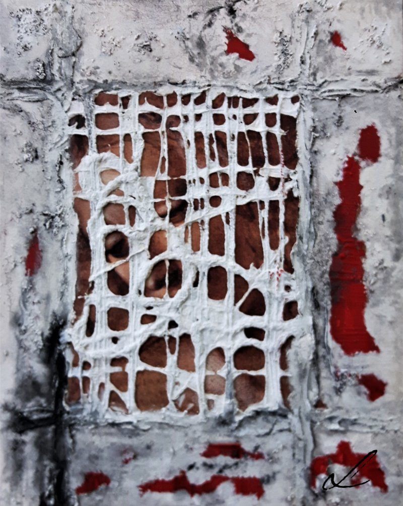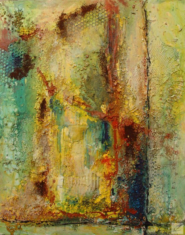 Acryl, Seide, Pulp, Encaustik auf Leinwand