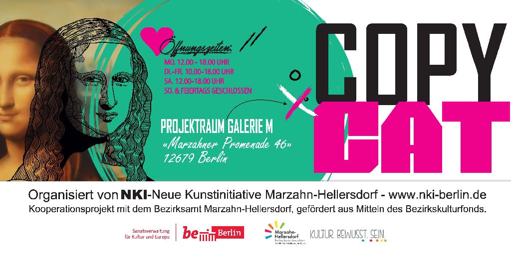Die Ausstellung „COPYCAT“ im Projektraum Galerie M beschäftigt sich mit der Kunst der Nachahmung. Gezeigt wird eine Auswahl von Interpretationen oder Reproduktionen und Zitaten von Arbeiten bekannter Künstler/innen. Die Ausstellung illustriert das breite Spektrum des Kopierens. Es reicht von der Vervielfältigung berühmter Vorbilder bis zu deren gezielter Abwandlung. Im Besonderen interessiert die teilnehmeden Künstler/innen der kreative Dialog und Mehrwert, die aus dem Wechselspiel zwischen Original und Zitat entstehen können. Wie in den asiatischen Kulturen verstehen sie ihre Nachahmungen als Wertschätzung und Honoration des Originals und dessen Schöpfers. Zitate sind legitimierte Fundamente, auf denen moderne Ideen und weiterführende Entwicklungen von Kunstwerken aufgebaut werden können.