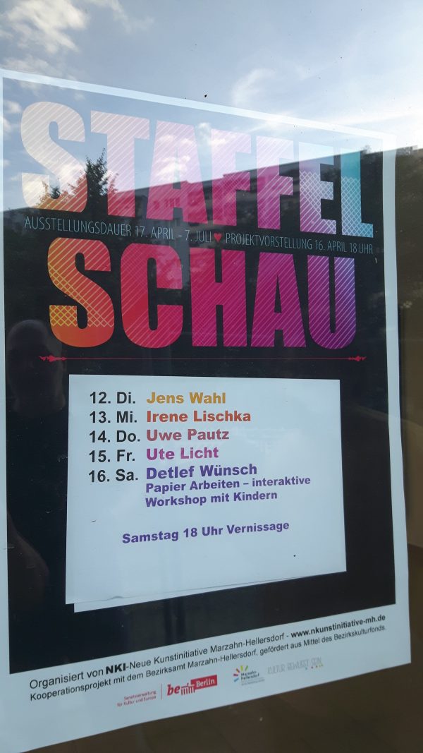 ​Die Staffelschau der Neuen Kunstinitiative läuft ja bereits seit einigen Wochen. Und ich übernehme am 15.06.2018, also am kommenden Freitag, einen der Staffelstäbe. Um ihn am darauf folgenden Freitag weiterzugeben. Am Samstag, 16.06., beginnt 18:00 Uhr die Vernissage zur Staffelschau der gerade zu diesem Zeitpunkt beteiligten Künstler.