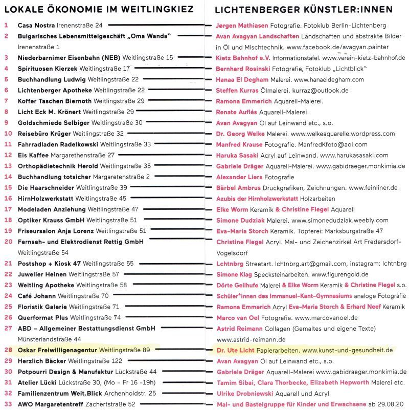 Seit 21. August läuft die Kunstmeile 2020 im Weitlingkiez in Berlin. Sie geht bis einschließlich 04. September und endet an diesem Tag mit der Langen Nacht der Bilder.