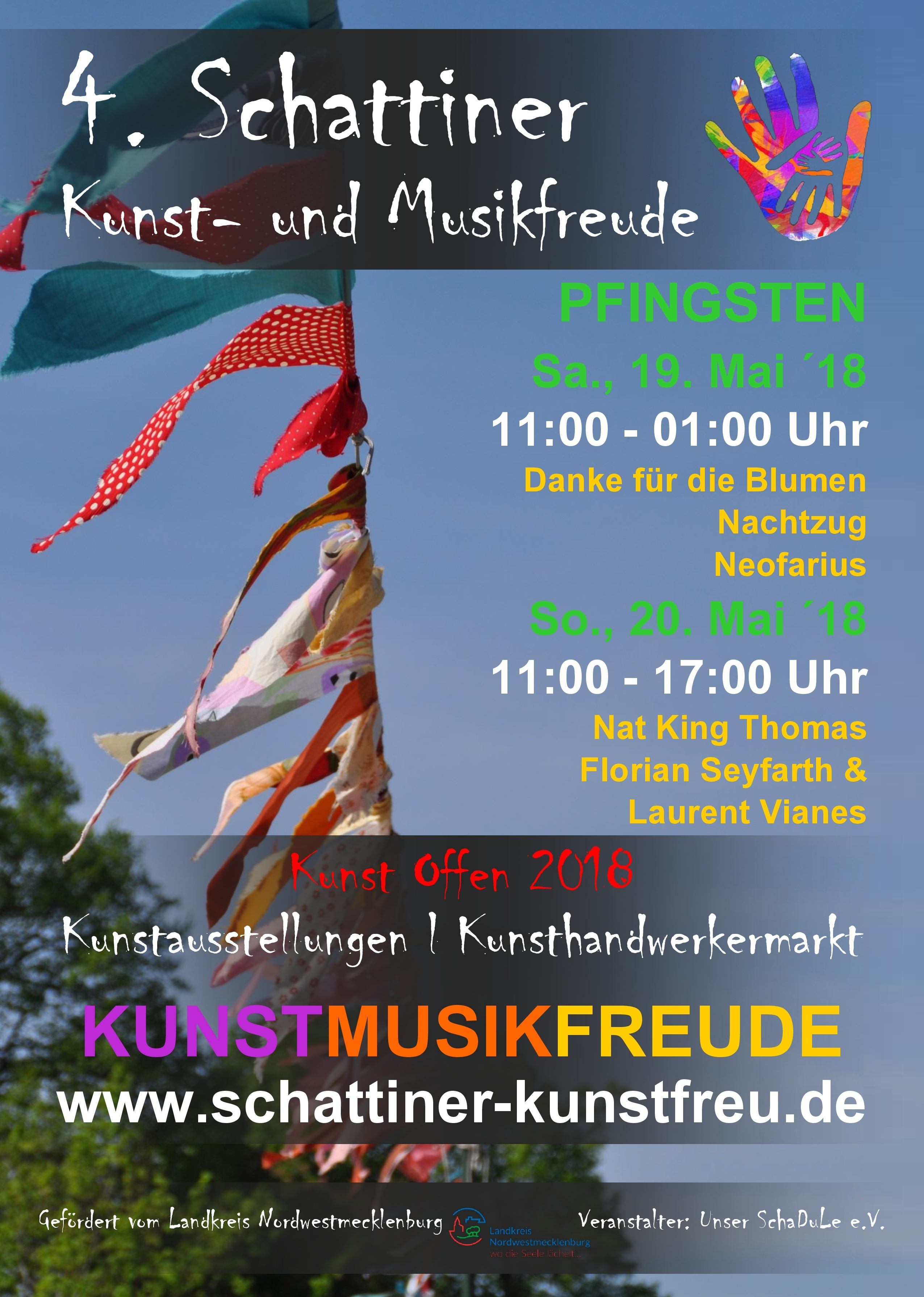 Inzwischen ist es schon eine schöne Tradition, sich Pfingsten auf den Weg nach Schattin zu machen und mit Kind und Kegel ein vielfältiges Kunst- und Kulturangebot im liebevoll gestalteten Ort zu genießen. Ich freue mich, dass ich mit meiner Kunst auch in diesem Jahr wieder in meiner alten Heimat dabei bin.