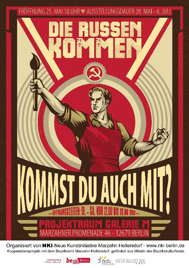 Zum Projekt „Die Russen kommen, kommst du auch mit?“ werden auch in Deutschland lebende Künstler eingeladen, die aus der ehemaligen Sowjetunion stammen. Es werden Arbeiten gezeigt, in denen sich die Künstler mit der durch die Emigration entstandenen Situation kreativ auseinandersetzen.